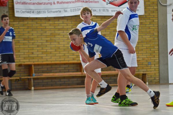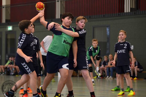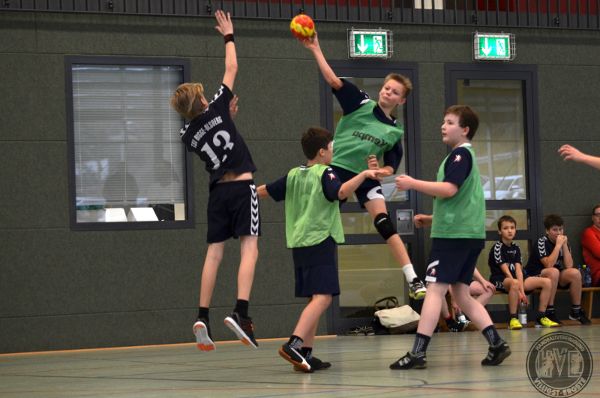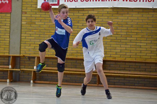 Zwei ähnlich starke Gegner standen sich bei der Begegnung HVE:HV Sundern gegenüber. Immer wieder konnte ein Gleichstand errungen werden – auch dank des Hattricks von Cyrill M., der bei seinem Einsatz in der ersten Spielhälfte eine starke Leistung zeigte. Ebenso konnten Torwart Pascal L. und Thore H. mehrere Glanzpunkte setzen. So hatte sich der HV in der 20. Minute nur mit 3 Toren abgesetzt. Danach gelangen dem Gast allerdings aufgrund schwerer Abwehrfehler der HVE mehrere Tore hintereinander, so dass sich Sundern zur Pause einen Vorsprung von 9:17 sichern konnte.