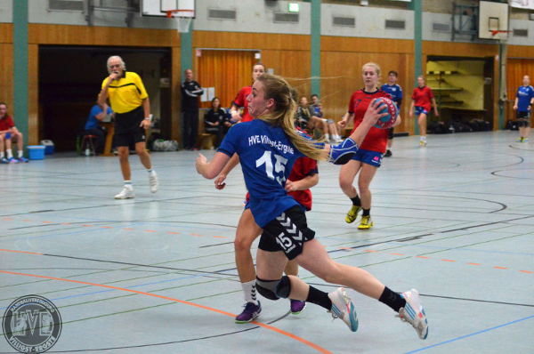 Eingetreten sind letztlich beide Szenarien. Weil der Verfolger beim Tabellenvorletzten ÖSG Viktoria Dortmund verlor, hätten schon vor dem Anpfiff des HVE-Spiels die Sektkorken knallen können. Im Stile eines immer noch verlustpunktfreien Spitzenreiters erledigte Anja B.s Team seine Aufgabe dann souverän und gewann mit 19:17 (11:8).
