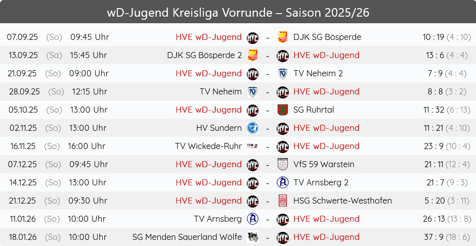 HVE wD-Jugend – Saison 2025/2026 – Kreisliga